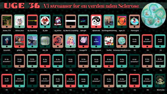 Så derfor har vi igen i år samlet en masse dejlige mennesker som vil streame i hele uge 36 op til indsamlingsdagen den 8 september hvor vi slutter af med en brag.