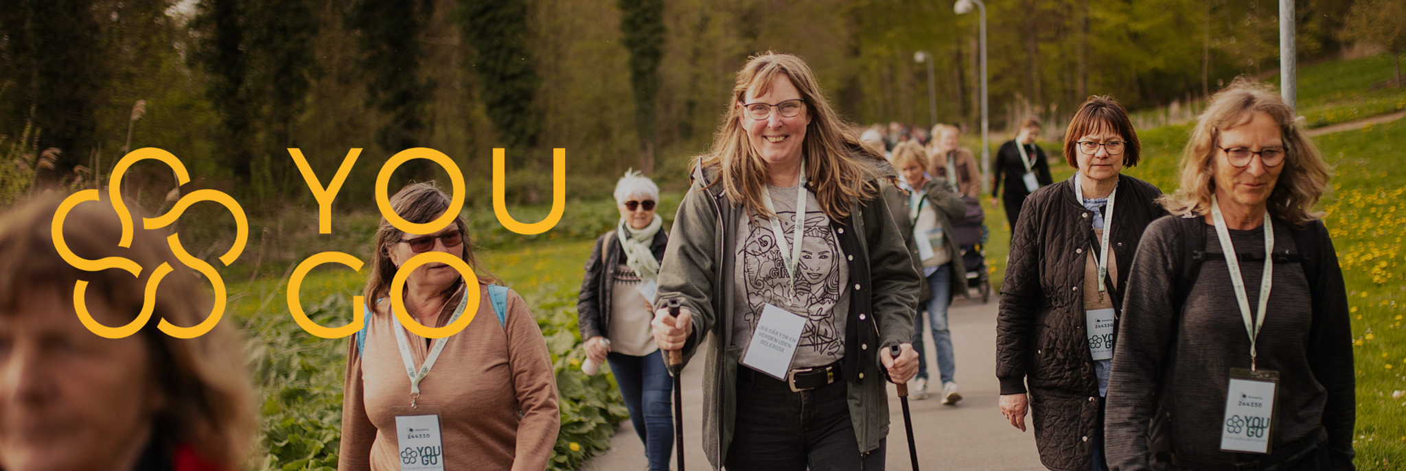 Ved et YOU GO Event kan ALLE være med uanset fysisk form eller alder. Uanset, om du er typen som kan løbe et marathon eller bruger kørestol, så kan du være med i YOU GO. Ruterne kan altid tilpasses og du kan gå med ligeså så langt som du kan. Hvert skridt tæller.